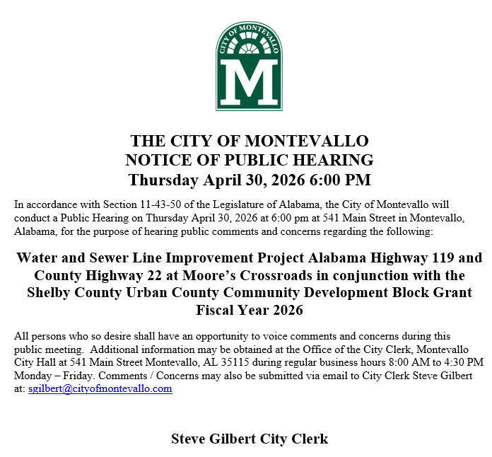 NOTICE OF PUBLIC HEARINGThursday April 30, 2026 6:00 PM