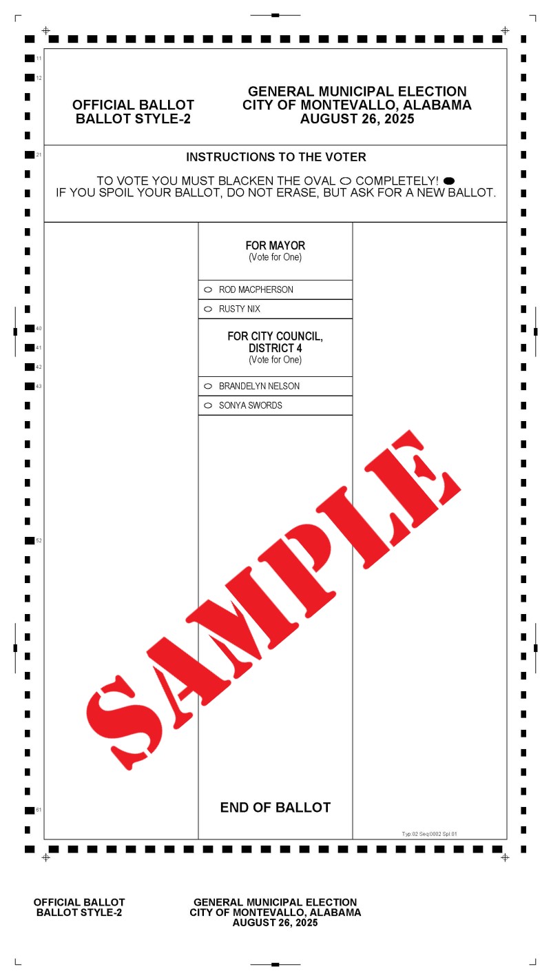 Montevallo Sample Ballot District 4