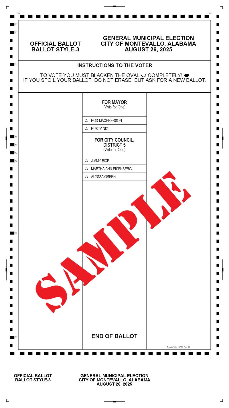 Montevallo Sample Ballot District 5