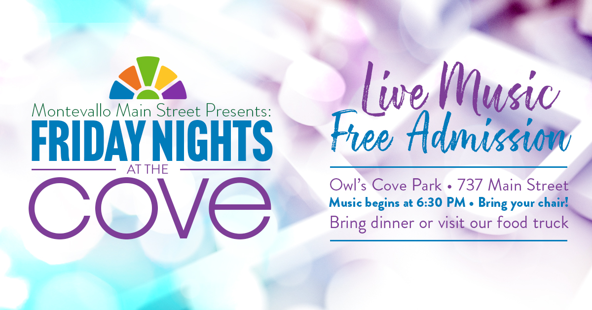 Friday Nights at the Cove is hosted by Montevallo Main Street, a volunteer-driven organization whose mission is to promote and revitalize our historic downtown. Montevallo has been a Designated Main Street Community since June 2016.