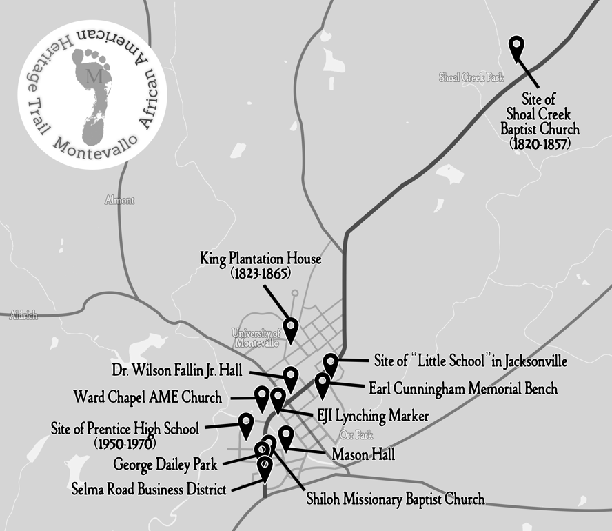 Officially adopted by the city of Montevallo in August 2022, the African American Heritage Trail uses markers, plaques, signage, and digital resources to recognize significant sites of Black history and culture in and around Montevallo, Alabama. The Trail will provide a fuller, more richly textured local history to serve as a legacy for young people and future generations. The Montevallo Historic Preservation Commission and Montevallo Legacy Project have been hard at work researching and developing the trail.