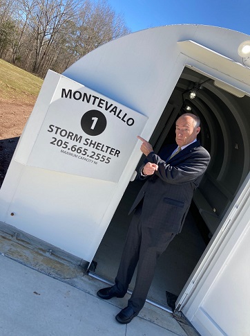Storm Shelter #1 in Stephens Park, 500 Co. Rd 10, Montevallo is NOW OPEN. Please be weather prepared and aware. Tune in to the local weather service for the most up-to-date information. The Storm Shelter will remain OPEN until the Tornado Watch or Tornado Warning has expired and it is safe for residents to return home.