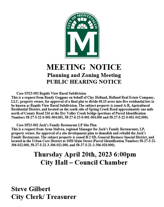 MEETING NOTICE: Planning and Zoning Meeting - PUBLIC HEARING NOTICE