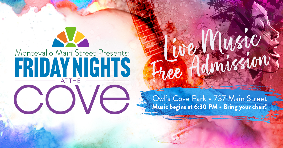 Friday Nights at the Cove is hosted by Montevallo Main Street, a volunteer-driven organization whose mission is to promote and revitalize our historic downtown. Montevallo has been a Designated Main Street Community since June 2016.